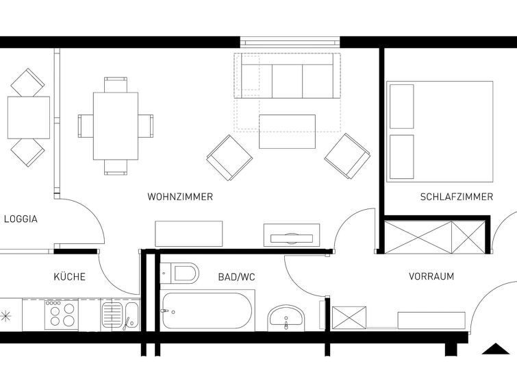 "Sonnblick", 2-Zimmer-Wohnung im Erdgeschoss. Objekt geeignet für 4 Erwachsene. Sehr komfortabel und gemütlich eingerichtet: Eingang. 1 Doppelzimmer. Wohn-/Schlafzimmer mit 1 Doppeldiwanbett, Esstisch und TV. Ausgang zum Balkon. Kleine Küche (3 Kochplatten, Backofen, Geschirrspüler, Toaster, Wasserkocher, elektrische Kaffeemaschine). Bad/WC. Parkettboden. Seitliche Sicht. Bitte beachten: geeignet für Familien. Rauchmelder.