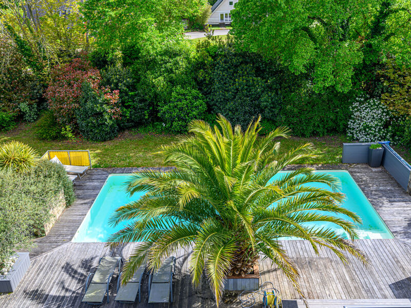 Villa "Villa Pyramide II", van 3 verdiepingen. Huurobject bestaande uit hoofd-/ bijgebouw, aan de rand van de plaats, 2 km van het centrum van Saint-Philibert, 50 m van zee, van het strand, aan een doodlopende weg. Voor medegebruik: tennisbaan. Voor alleengebruik: verzorgde tuin 370 m2, openluchtzwembad verwarmd (11 x 5 m, 150 - 150 cm diepte, seizoensgebonden beschikbaarheid: 11.Mei. - 15.Okt.) met trap en alarminstallatie. Parkeerplaats (voor 5 auto's) bij het huis. Levensmiddelenwinkel 2 km, restaurant 2 km, bakkerij 2000 km, café 2 km, zandstrand "Kernevest" 900 m. Jachthaven 1.5 km, golfterrein (18 holes) 12 km, zeilschool 900 m, wandelroutes 50 m vanaf het huis. Attracties in de buurt: La Trinité-sur-mer 2 km, Carnac et ses alignements 7 km, Auray - Port de St Goustan 15 km, Presqu'île de Quiberon 25 km, Vannes 25 km, Belle-île, Houat et Hoëdic. Wandelgebied Golfe du Morbihan 20 km.