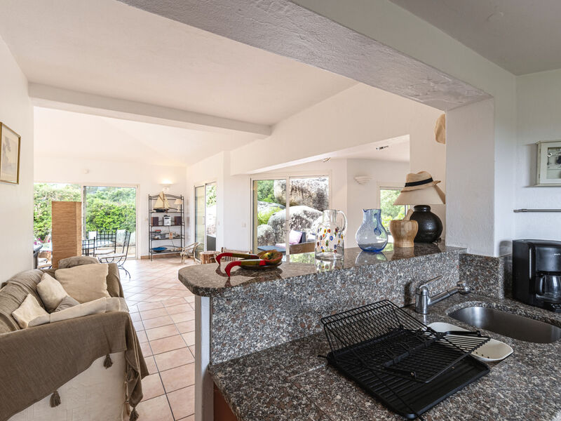 Eengezinswoning van 2 verdiepingen. In de wijk Marina Di Fiori, aan de rand van de plaats, 3.5 km van het centrum van Porto-Vecchio, in een woonwijk, 600 m van zee, 600 m van het strand. Voor medegebruik: openluchtzwembad hoekig omheind (25 x 12 m, 100 - 250 cm diepte, seizoensgebonden beschikbaarheid: 15.Mei. - 15.Sep.). Douche/WC bij het zwembad, onderhoud zwembad door de eigenaar/tuinman. Voor alleengebruik: terrein (omheind), tuin op verschillende niveaus, openluchtzwembad niervormig, geen inkijk (10 x 3 m, 140 - 190 cm diepte, seizoensgebonden beschikbaarheid: 01.Jun. - 01.Okt.) met alarminstallatie. Jeu de boules, onderhoud zwembad door de eigenaar/tuinman. In het complex: restaurant. Parkeerplaats (voor 3 auto's). Winkel 1 km, supermarkt 1 km, restaurant 600 m, bushalte "Porto-Vecchio Centre" 700 m, zandstrand "Plage de Cala Verde" 2 km. Jachthaven 3.5 km, golfterrein (9 holes) 10 km. Attracties in de buurt: Centre ville de Porto-Vecchio 3.5 km, Plage de Santa Giulia 11 km, Plage de Palombaggia 13 km, Bonifacio 30 km. Bekende meren kunnen gemakkelijk worden bereikt: Lac de l'Ospédale 20 km. Wandelgebied Aiguilles de Bavella 48 km. Auto noodzakelijk. Privé aanlegsteiger voor een boot, op aanvraag.
