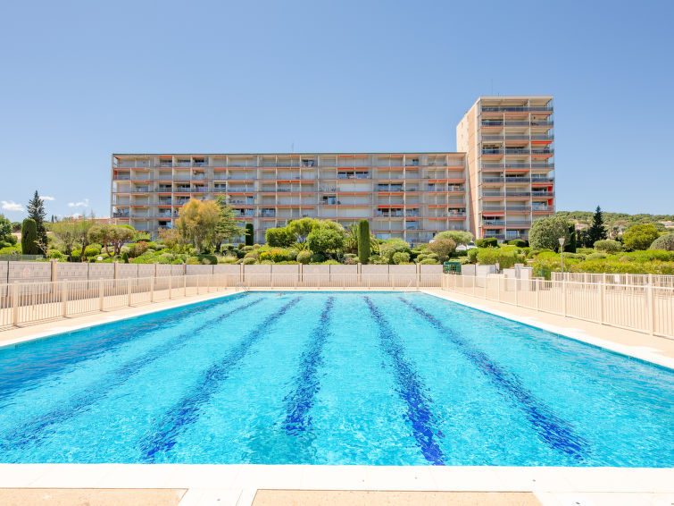 Appartement 2-kamers 50 m2 op de 4e verdieping, op het zuidoosten gelegen. Eenvoudig en rustiek ingericht: woon-/eetkamer met 1 2-pers kastbed (1 x 140 cm, lengte 190 cm), TV en air-conditioning. Uitgang naar het terras. 1 kamer met 1 bed (140 cm, lengte 190 cm). Kookhoek (afwasmachine, 1 keramische glas kookplaat, 4 kookpitten (vlammen), broodrooster, waterkoker, magnetron, diepvriezer, elektrische koffiemachine). Bad/WC. Elektrische verwarming. Terras 10 m2. Terrasmeubelen. Uitzicht op zee, het zwembad en de tuin. Ter beschikking: wasmachine. Internet (Internet (WiFi), gratis). Parkeerplaats. Niet rokers woning. 1 klein huisdier/hond toegestaan. Rookmelders. Aanbod door een particulier volgens art. 155, IV van CGI. 83115003222AK