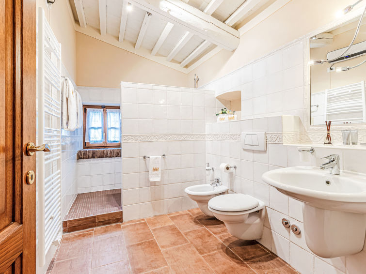 Gezellige villa "Chateau Le Siroque", vrijstaand, omgeven door weiden. 3 km van het centrum van Montecatini Val di Cecina. Voor medegebruik: openluchtzwembad (6 x 12 m, 140 cm diepte, seizoensgebonden beschikbaarheid: 15.Mei. - 30.Sep.). Buitendouche, hot tub. Voor alleengebruik: park 2.000 m2. Buitendouche, tuinmeubelen, barbecue.