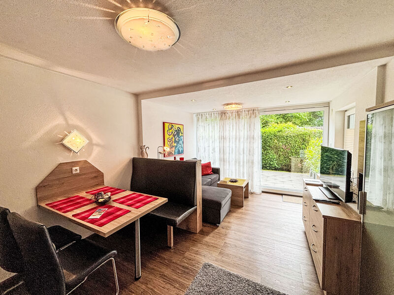 "TOP 4", appartement 1-kamer 33 m2, op de begane grond. Mooi en gezellig ingericht: woon-/slaapkamer met 1 2-pers bed, eettafel, Sat-TV en internationale TV-zenders (Flatscreen TV). Uitgang naar het terras. Kleine kookhoek (oven, afwasmachine, 4 keramische glas kookplaten, waterkoker, elektrische koffiemachine). Douche/WC. Vloerverwarming. Parketvloeren. Klein terras. Terrasmeubelen. Ter beschikking: Internet (WiFi, gratis). Niet rokers woning.