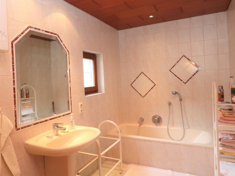 Huis 4-kamers 150 m2. Licht, volledig gerenoveerd, zeer comfortabel en stijlvol ingericht: hal. Eetkamer met eethoek en tegelkachel. Groot woon-/slaapkamer met panoramavenster met 1 2-pers divanbed en Sat-TV. Uitgang naar het terras. Keuken (4-pits kookplaat, oven, afwasmachine, elektrische koffiemachine). Bad/douche, aparte WC. Vloerverwarming. Bovenverdieping: Studio met 1 2-pers bed, eettafel, kookhoek en Sat-TV. Uitgang naar het balkon. 1 groot 2-pers. kamer met 1 2-pers bed en Sat-TV. Douche/WC. Houten vloeren. Klein balkon, groot terras gedeeltelijk overdekt. Terrasmeubelen, ligstoelen, zitgelegenheid. Uitzicht op de bergen en het landschap. Ter beschikking: wasmachine, droger, strijkijzer, haardroger. Internet (WiFi, gratis). Geschikt voor families. Niet rokers woning. 1 huisdier/hond toegestaan. Rookmelders, brandblusser. De garage doet in de winter dienst als skiberging en als berging voor uw fietsen, mountainbikes en sportuitrusting in de zomer. Als u uw sportwagen of oldtimer in de garage wilt, reserveer dan tijdens het boekingsproces. 50336-001014-2020