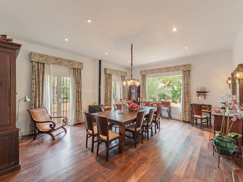 "Las Codornices", villa 11-kamers 500 m2 op 3 verdiepingen. Doelmatig en comfortabel ingericht: groot woon-/eetkamer met open haard, Digitale TV, Flatscreen TV, radio, CD-speler en DVD. 2 kamers, elke kamer heeft 1 2-pers bed (150 cm, lengte 190 cm), bad/WC. 2 kamers, elke kamer heeft 2 bedden (90 cm, lengte 190 cm). 1 kamer met 1 bed (90 cm, lengte 190 cm). Groot keuken (oven, afwasmachine, 4 keramische glas kookplaten, broodrooster, waterkoker, magnetron, diepvriezer, elektrische koffiemachine). Douche/WC. Bovenverdieping: 1 kamer met 1 2-pers bed (150 cm, lengte 190 cm). 1 kamer met 2 bedden (90 cm, lengte 190 cm), 1 x 2 stapelbedden (90 cm, lengte 190 cm). Bad/WC. 2e Verdieping: Erker. 3e Verdieping: groot woonkamer met bibliotheek, Digitale TV en Flatscreen TV. Keuken (oven, afwasmachine, 4 keramische glas kookplaten, waterkoker, magnetron, diepvriezer, elektrische koffiemachine). Bad/bidet/WC. Vloerverwarming. Zolderverdieping: 1 kamer met 1 2-pers bed (150 cm, lengte 190 cm). 1 kamer met 2 bedden (90 cm, lengte 200 cm), 1 2-pers divanbed. Bad/bidet/WC. Air-conditioning, heteluchtverwarming. Tuin. Barbecue, ligstoelen. Ter beschikking: wasmachine, strijkijzer, kinderstoel, kinderbed tot 2 jaar, haardroger. Internet (WiFi, gratis). Geschikt voor families. Rookvrij huis. Maximaal 1 huisdier/hond toegestaan. Geen interne verbinding tussen de aparte wooneenheden. VTAR/SE/00682