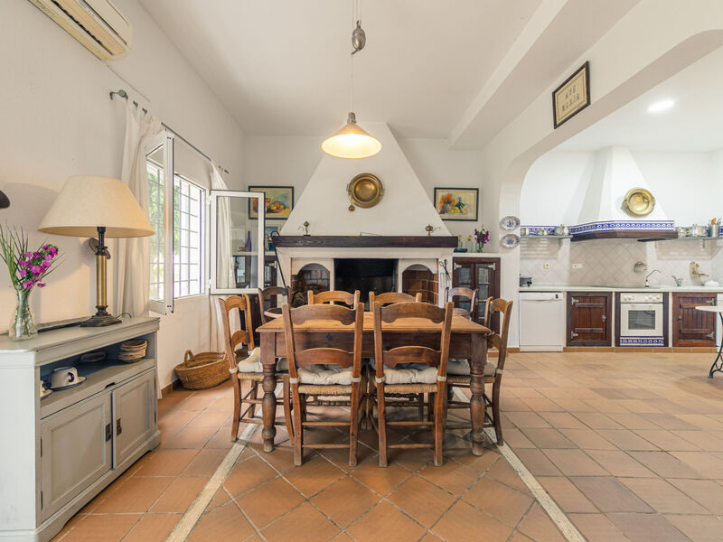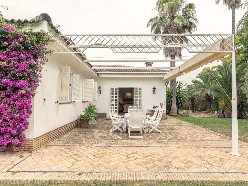 Comfortabele villa "Las Codornices". Aan de rand van de plaats Sanlúcar la Mayor, geïsoleerde, rustige, zonnige ligging. Voor alleengebruik: tuin 9.000 m2 met gazon en bomen, openluchtzwembad (12 x 6 m, 170 - 185 cm diepte, seizoensgebonden beschikbaarheid: 01.Jan. - 31.Dec.). Buitendouche, poolhouse, parkeerplaats (voor 10 auto's) bij het huis. Levensmiddelenwinkel 2 km, supermarkt 2 km, restaurant 2 km, bakkerij 2 km, bushalte 2 km, treinstation 2 km, zandstrand 60 km. Jachthaven 80 km, golfterrein (18 holes) 10 km, tennis 2 km. Attracties in de buurt: Sevilla 19 km, Aldea del Rocío 50 km. Wandelgebied Parque de Doñana 50 km, Corredor Verde del Río Guadiamar 2 km. De eigenaar accepteert geen jeugdgroepen.