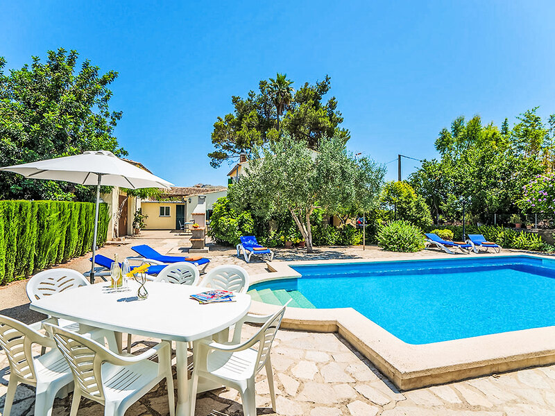 Landhuis "Cuxach d´en Joan". Buiten de plaats, 1.7 km van het centrum van Pollença, 5 km van zee, aan een doodlopende weg. Voor alleengebruik: terrein 3.500 m2, tuin 90 m2 planten en bomen, openluchtzwembad (4 x 8 m, seizoensgebonden beschikbaarheid: 15.Mrt. - 07.Nov.). WC bij het zwembad, douche/WC bij het zwembad, buitendouche, prieel (24 m2), barbecue, parkeerplaats bij het huis. Winkel 1.5 km, levensmiddelenwinkel 1 km, restaurant 1 km, bushalte 1 km, treinstation 14 km, zandstrand 5 km kiezelstrand 5.5 km, rotsstrand 7.5 km. Golfterrein (18 holes) 3.5 km, tennis 1.2 km, manege 1.5 km.