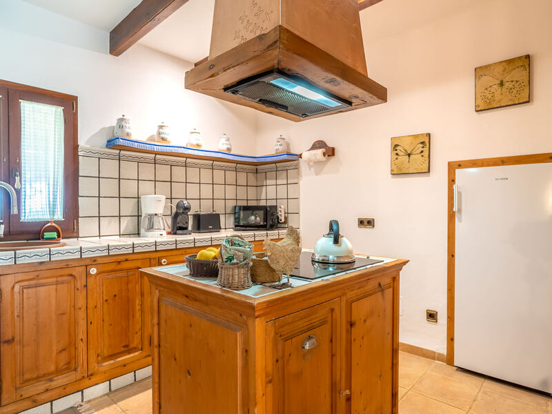 "Sa Caseta", villa 4-kamers 200 m2 op 2 verdiepingen. Het objekt is geschikt voor 6 volwassenen. Volledig gerenoveerd, rustiek en met veel hout ingericht: groot woon-/eetkamer met open haard, eettafel, Digitale TV en Flatscreen TV. 1 2-pers. kamer met panoramavenster met 1 2-pers bed (150 cm, lengte 200 cm), douche/WC, Digitale TV, Flatscreen TV en ventilator. 1 groot 2-pers. kamer met 1 2-pers bed (150 cm, lengte 200 cm), ventilator. Keuken (oven, afwasmachine, 3 keramische glas kookplaten, broodrooster, waterkoker, magnetron, diepvriezer, elektrische koffiemachine, kookeiland). Douche/WC. Bovenverdieping: (buitentrap), 1 groot 2-pers. kamer met panoramavenster met 1 2-pers bed (150 cm, lengte 200 cm), douche/WC en ventilator. Groot tuin, gazon. Terrasmeubelen, barbecue, ligstoelen, loggia. Zeer mooi panoramazicht op het landschap. Ter beschikking: wasmachine, droger, strijkijzer, kinderstoel, kinderbed tot 2 jaar, haardroger. Internet (WiFi, gratis). Eén tweepersoonskamer is buiten het appartement. Geen interne verbinding tussen de etages. Het zwembad genoemd in de beschrijving is voor privé gebruik. ETV/11676