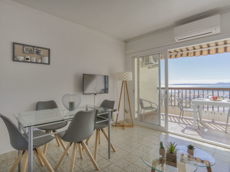 Appartement 2-kamers 47 m2, op het zuidwesten gelegen. Gerenoveerd, comfortabel en gezellig ingericht: woon-/eetkamer met 1 2-pers divanbed, eettafel, Sat-TV en Digitale TV (Flatscreen TV), air-conditioning en heteluchtverwarming. Uitgang naar het terras, op het zuiden en op het westen. 1 kleine kamer met 1 2-pers bed (135 cm). Open keuken (afwasmachine, 2 keramische glas kookplaten, broodrooster, waterkoker, magnetron, diepvriezer). Bad/WC. Groot terras 8 m2. Terrasmeubelen. Mooi panoramazicht op zee. Ter beschikking: wasmachine. Internet (WiFi, gratis). Garage nr. 176. Parkeerplaats alleen voor een kleine auto. Maximaal 1 klein huisdier/hond toegestaan. TV alleen ES, FR, DE. HUTG043953