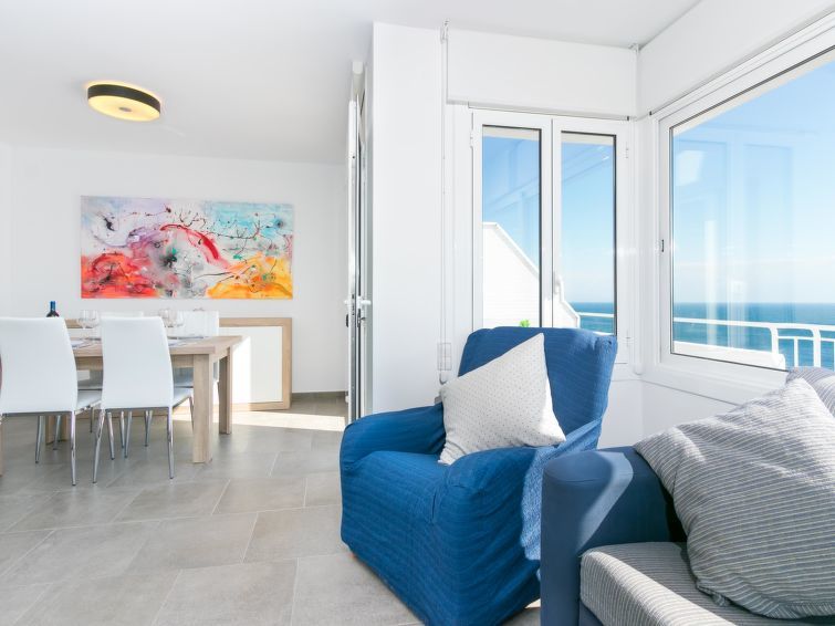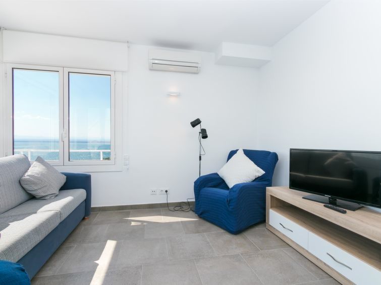 Huis 4-kamers 118 m2 op 2 verdiepingen, op het zuidwesten gelegen. Volledig gerenoveerd in 2019, modern en stijlvol ingericht: woon-/eetkamer met panoramavenster met 1 divanbed, eettafel, Digitale TV, Flatscreen TV, air-conditioning, heteluchtverwarming en elektrische rolluiken. Uitgang naar het terras, op het zuiden en op het westen. Keuken (afwasmachine, 3 inductiekookplaten, magnetron, diepvriezer, elektrische koffiemachine). Aparte WC. Souterrain: 1 kamer met 1 2-pers bed. Uitgang naar het terras, op het zuiden en op het westen. 1 kamer met 2 bedden. Uitgang naar het balkon. 1 kamer met 1 bed (110 cm, lengte 190 cm). Bad/WC. Klein terras 10 m2, op het zuiden gelegen en op het westen gelegen. Terrasmeubelen. Mooi panoramazicht op zee en het landschap. Ter beschikking: wasmachine. Internet (WiFi, gratis). Garage. TV alleen ES. HUTG028994