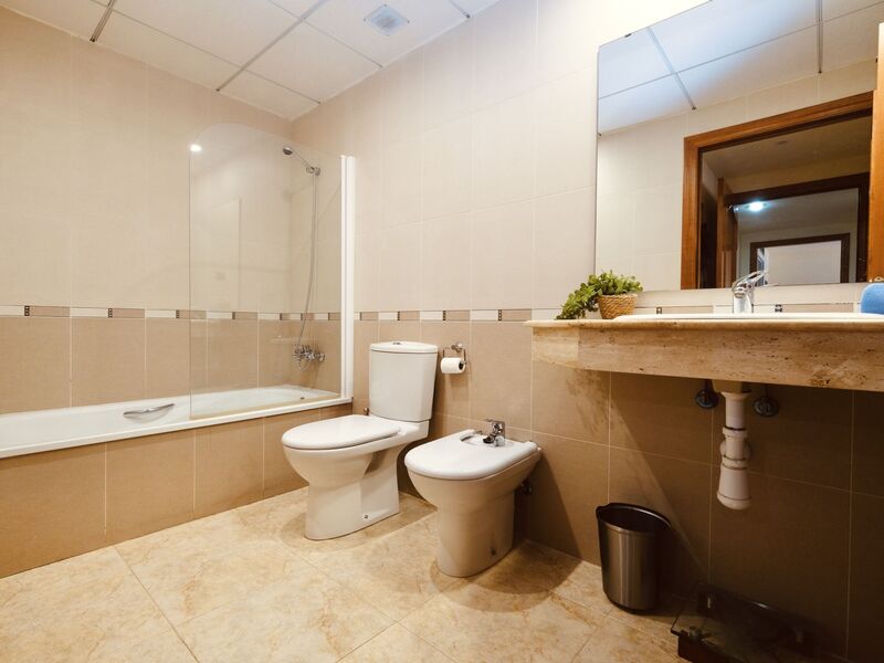"Residencial Golden Beach", appartement 3-kamers 65 m2. Gezellig ingericht: woon-/eetkamer met TV. Uitgang naar het terras. 1 kamer met 1 bed (135 cm, lengte 190 cm), bad/bidet/WC. Uitgang naar het terras. 1 kamer met 1 x 1 stapelbedden (90 cm, lengte 190 cm). Woonkeuken (oven, 4 kookpitten (vlammen), broodrooster, waterkoker, magnetron, diepvriezer, elektrische koffiemachine, pads voor de koffiemachine (Dolce Gusto) extra). Uitgang naar het terras. Douche/WC. Verwarming niet in alle ruimtes. Uitzicht op het zwembad. Ter beschikking: wasmachine, strijkijzer, haardroger. Internet (WiFi, gratis). HUTTE076980 // Reg. Nr.: ESFCTU00004301000060275800000000000000000HUTTE0769804