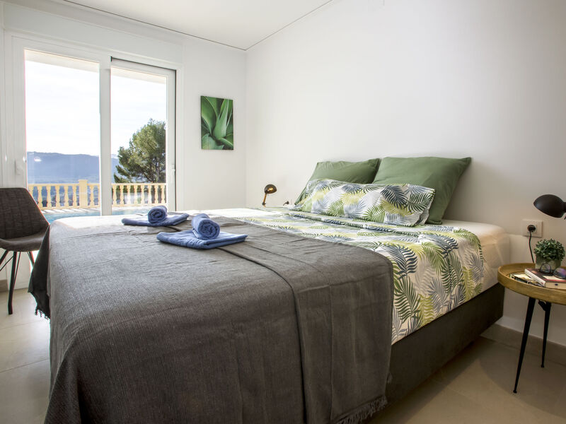Zeer groot, moderne, zeer comfortabele villa "Cara Mull Alcalalí", van 2 verdiepingen, bouwjaar 2020, omgeven door bomen, weiden en wijngaarden. In de plaats Alcalalí, 20 km van het centrum van Calpe,Dénia,Javea,Moraira,Altea, rustige, zonnige, verhoogde ligging, 17 km van zee, 17 km van het strand, op het zuiden. Voor alleengebruik: terrein 2.500 m2, groot, mooie, verzorgde tuin op verschillende niveaus planten en bomen, openluchtzwembad (15 x 6 m, 130 - 200 cm diepte, seizoensgebonden beschikbaarheid: 01.Jan. - 31.Dec.) met trap. Buitendouche, prieel, terras, tuinmeubelen, barbecue, onderhoud zwembad door de eigenaar/tuinman. In het huis: lift, centrale verwarming, air-conditioning, wasserette, wasmachine, droger. Parkeerplaats (voor 5 auto's) op het terrein. Winkel 600 m, supermarkt 3 km, winkelcentrum 550 m, restaurant, bakkerij 600 m, café 500 m, fietsverhuur 2 km, bushalte 22 km, treinstation 21 km, veerboot 22 km. Wandelroutes 500 m vanaf het huis. Attracties in de buurt: Rastro/Flea Market de Jalón 3 km, Parque Natural del Peñón de Ifach 17 km, Port de l'Olla de Altea 16 km, Fuentes del Algar 12 km. Wandelgebied cicloturismo 50 m. Auto noodzakelijk. De eigenaar accepteert geen jeugdgroepen.