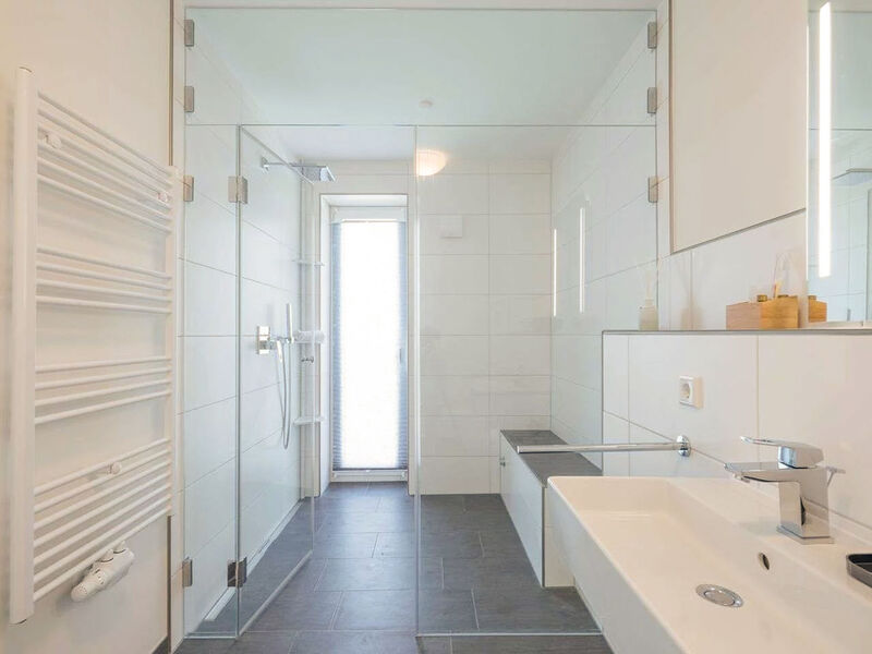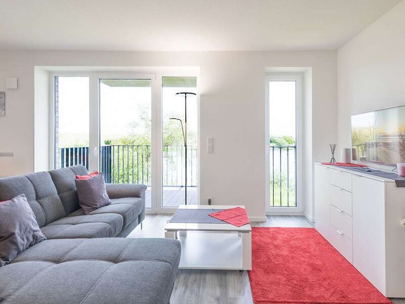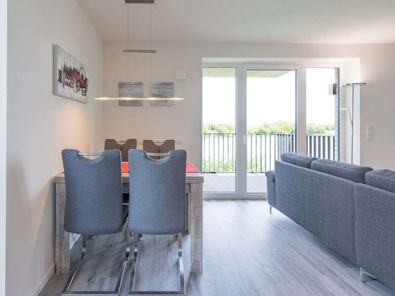 "Auszeit am Deich", apt 3 pièces 75 m2 au 1er étage. Aménagement très de style et plaisant: séjour/salle à manger avec TV (satellite) (écran plat). Sortie sur le balcon. 2 chambres, chaque chambre avec: 1 lit double (1 x 160 cm, longueur 200 cm), douche/WC. Cuisine ouverte (4 plaques de cuisson, four, lave-vaisselle, grille-pain, bouilloire électrique, micro-ondes, cafetière électrique) avec table pour les repas. Chauffage par le sol. Très belle vue panoramique sur la mer. A disposition: lave-linge, sèche-linge, moustiquaire, sèche-cheveux. Internet (Connexion WIFI). Lecteur Blu-ray. Place de parking. Veuillez noter: logement non-fumeur.