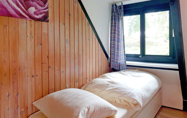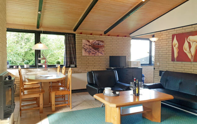 "Haus 42", bungalow 4 pièces 60 m2. Partiellement mansardé, aménagement plaisant: séjour/salle à manger 30 m2 avec cheminée et TV (satellite) (écran plat). Sortie sur la terrasse. 1 chambre 9 m2 avec 2 lits (80 cm, longueur 190 cm). 2 chambres 6 m2, chaque chambre avec: 2 lits (80 cm, longueur 190 cm). Petite cuisine ouverte 5 m2 (4 plaques de cuisson, four, four micro-ondes, cafetière électrique). Bain/douche/WC. Chauffage électrique. Terrasse 10 m2 partiellement couverte. Meubles de terrasse. A disposition: bois (en sus). Internet (Connexion WIFI, en sus). Veuillez noter: maison non-fumeur. Maximum 2 animaux/ chiens autorisés. Détecteur de fumée.