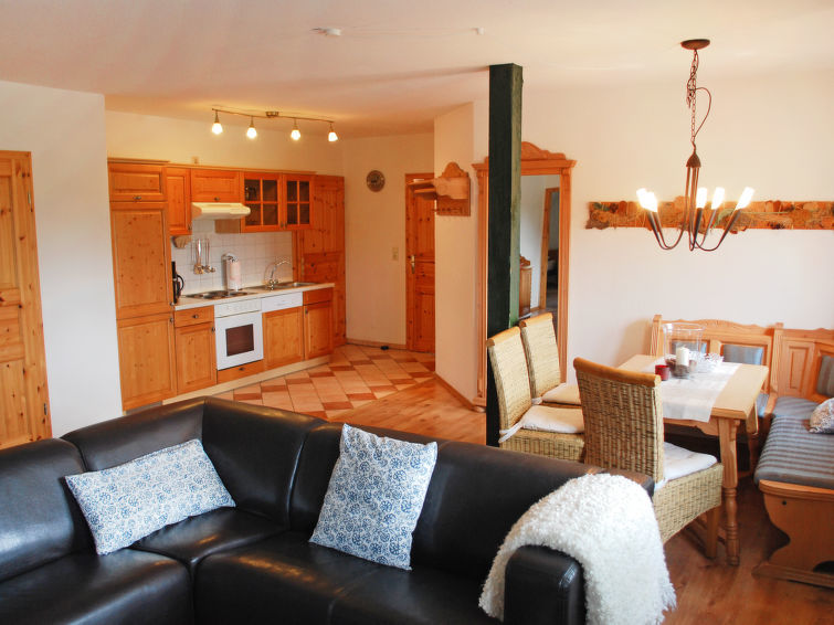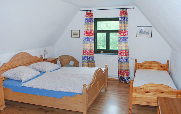 "Rügen", apt 4 pièces 105 m2 au 1er étage. Séjour/salle à manger mansardé avec TV (satellite) (écran plat). 2 chambres mansardées, chaque chambre avec: 2 lits. 1 chambre mansardée avec 1 lit et 1 lit double. Coin cuisine (four, lave-vaisselle, cafetière électrique). Douche/WC. A disposition: Internet (Connexion WIFI, gratuit). Veuillez noter: logement non-fumeur. Maximum 2 animaux/ chiens autorisés.