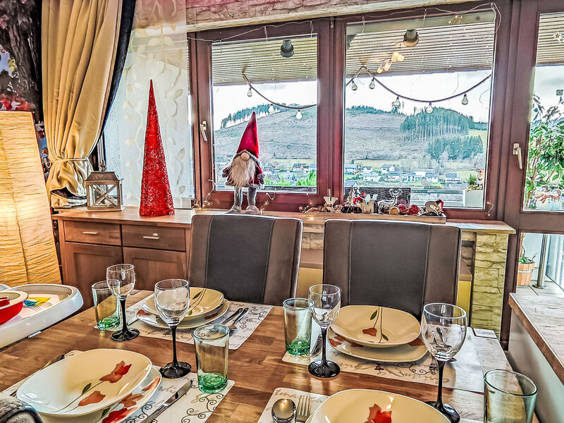 Niedersfeld à 8 km de Winterberg: Immeuble, renové en 2021. Situation ensoleillée, surélevée sur un versant. En hiver, merci de prévoir des chaînes. Place de parking près de la maison. Magasins 2 km, supermarché 2 km, restaurant 1 km, arrêt de bus 700 m, gare ferroviaire 12 km, plage de sable 300 m, piscine 8 km. Terrain de golf (9 trous) 8 km, tennis 1 km, téléski 2 km, télésiège 8 km. Ski de fond 2.5 km, patinoire 8 km, jeux pour enfants 1.5 km. Attractions à proximité: Ruhrquelle 7 km. Les domaines skiables de renommée sont facilement accessibles: Skiarena Winterberg 8 km.