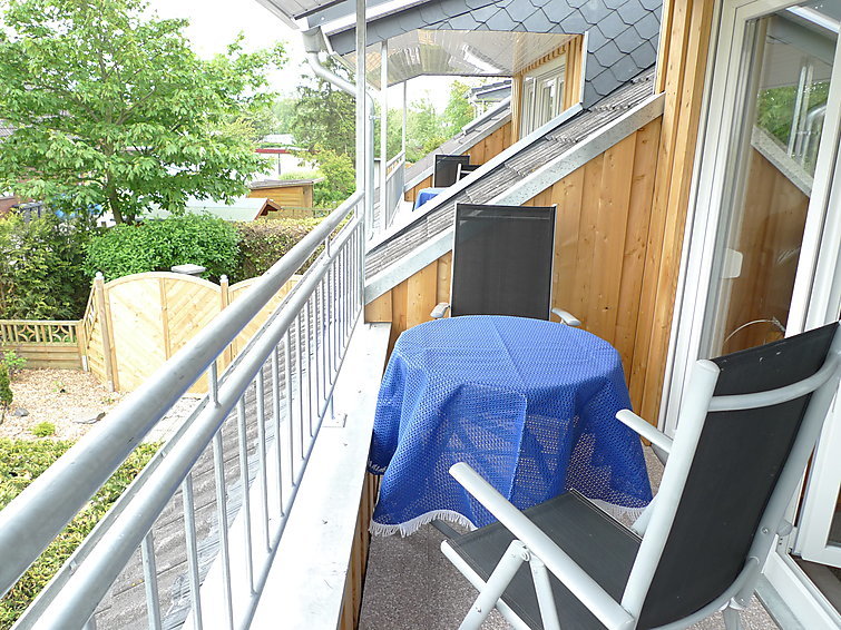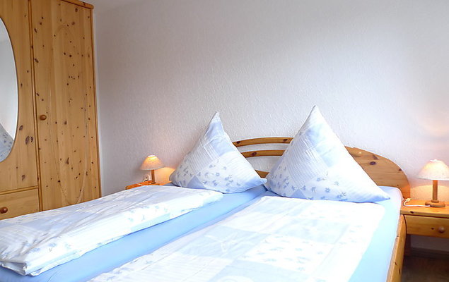 Apt 2 pièces 45 m2, à l'étage supérieur. Aménagement plaisant: séjour/salle à manger 27 m2 avec 1 lit armoire (90 cm, longueur 190 cm), TV (satellite) et chaîne stéréo. Sortie sur le balcon. 1 chambre 11 m2 avec 1 lit double (2 x 90 cm, longueur 200 cm). Coin cuisine (4 plaques de cuisson, lave-vaisselle, grille-pain, four micro-ondes, cafetière électrique) avec table pour les repas. Douche/WC. Mobilier de balcon. A disposition: chaise haute pour enfant (en sus). Veuillez noter: logement non-fumeur.