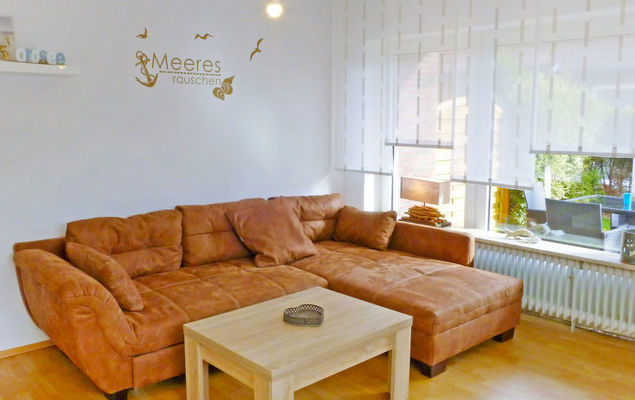 "Meeresrauschen", apt 2 pièces 40 m2, au rez-de-chaussée. Aménagement de bon goût: séjour/salle à manger 18 m2 avec 1 divan-lit et TV (satellite) (écran plat), radio. Sortie sur la terrasse. 1 chambre 9 m2 avec 1 lit double (2 x 80 cm, longueur 200 cm). Coin cuisine (four, 4 plaques vitrocéramiques, grille-pain, bouilloire électrique, four micro-ondes, congélateur, cafetière électrique). Douche/WC. Pelouse. Meubles de terrasse, chaises longues (2). A disposition: lave-linge, fer à repasser, chaise haute pour enfant (en sus). Internet (Connexion WIFI, gratuit). Veuillez noter: logement non-fumeur.