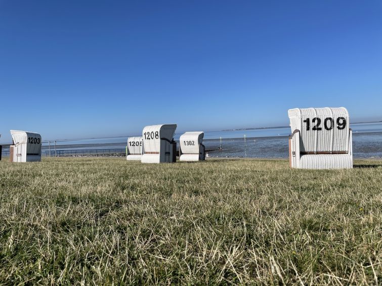"Norderoog", maison 3 pièces 85 m2, au rez-de-chaussée. Aménagement confortable et de bon goût: séjour/salle à manger avec poêle suédois et TV (satellite) (écran plat), radio et DVD. Sortie sur la terrasse. 2 chambres doubles. Cuisine ouverte (four, lave-vaisselle, 4 plaques vitrocéramiques, cafetière électrique). WC séparé, bain/douche/WC, Sauna. Meubles de terrasse. A disposition: Internet (Connexion WIFI, gratuit). Veuillez noter: maison non-fumeur. Maximum 2 animaux/ chiens autorisés. Détecteur de fumée.