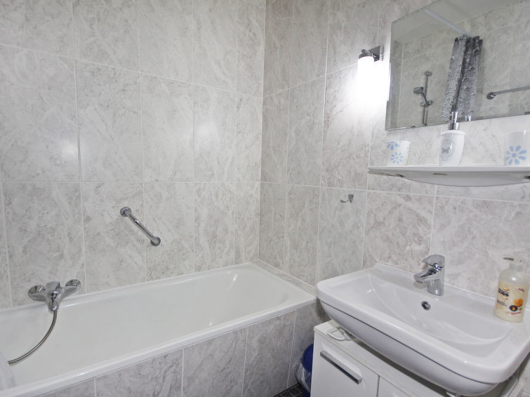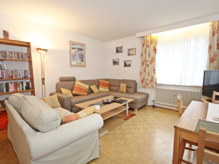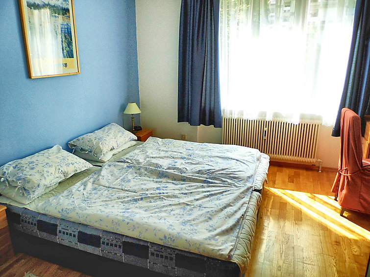 Apt 3 pièces 80 m2 au 4ème étage. Aménagement plaisant: entrée. Séjour/chambre à coucher avec 1 divan-lit double, table pour les repas, TV (satellite), radio et DVD. Sortie sur le balcon. 1 chambre double. 1 chambre avec 2 lits et radio. Cuisine (4 plaques de cuisson, four, lave-vaisselle, grille-pain, bouilloire électrique, four micro-ondes, cafetière électrique). Salle de bains, WC séparé. Balcon. Meubles de terrasse, chaises longues. Très belle vue sur les montagnes et la vallée. A disposition: Internet (Connexion WIFI, gratuit). Garage. Veuillez noter: logement non-fumeur. Détecteur de fumée. 50403-000407-2020