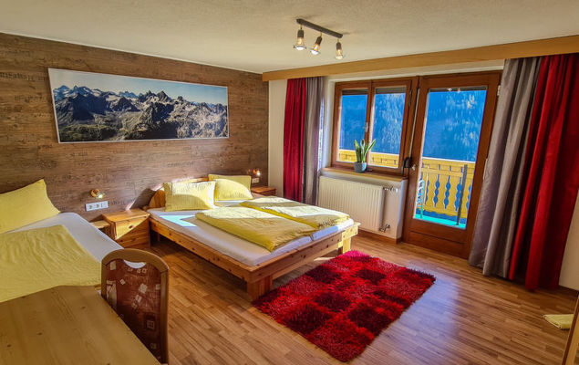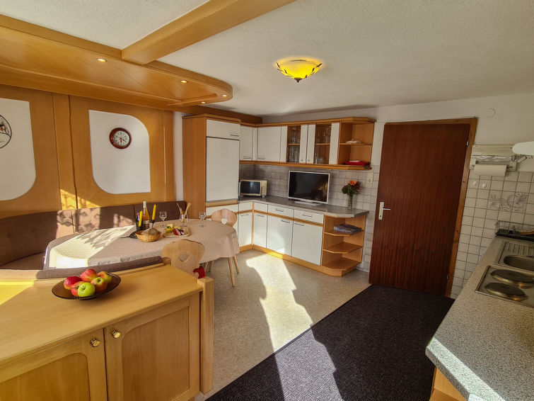 "Alpenliebe (KPL655)", apt 4 pièces 105 m2 sur 2 niveaux. Aménagement agréable: 2 chambres, chaque chambre avec: 1 lit et 1 lit double. Sortie sur le balcon. Cuisine/séjour (four, lave-vaisselle, 4 plaques vitrocéramiques, grille-pain, bouilloire électrique, four micro-ondes, cafetière électrique) avec table pour les repas et TV (satellite). Sortie sur le balcon. Douche, douche/WC, WC séparé. Chauffage au fuel. À l'étage inférieur: 1 chambre avec 1 lit double, lavabo et douche. Sortie sur le jardin. Balcon. Mobilier de balcon, barbecue, place pour s'asseoir. Vue panoramique sur les montagnes et la vallée. A disposition: chaise haute pour enfant, lit bébé. Internet (Connexion WIFI, gratuit). Veuillez noter: une chambre double est à l'exterieur de l'appartement. Logement non-fumeur. Détecteur de fumée, extincteur. Pas de liaison interne entre les étages.