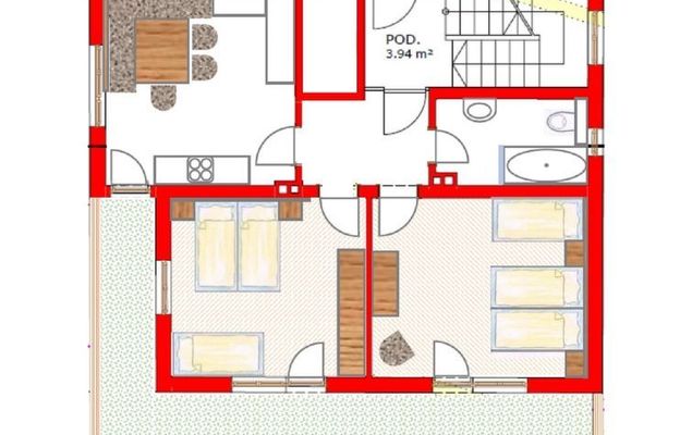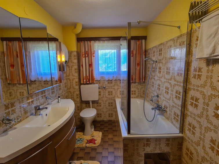"Alpenliebe (KPL657)", apt 3 pièces 75 m2, à l'étage supérieur. Aménagement agréable: 2 chambres, chaque chambre avec: 1 lit, 1 lit double et lavabo. Sortie sur le balcon. Cuisine/séjour (four, lave-vaisselle, 4 plaques vitrocéramiques, grille-pain, bouilloire électrique, four micro-ondes, cafetière électrique) avec table pour les repas et TV (satellite). Sortie sur le balcon. Bain/WC. Chauffage au fuel. Balcon. Mobilier de balcon, barbecue. Vue panoramique sur les montagnes et la vallée. A disposition: chaise haute pour enfant, lit bébé. Internet (Connexion WIFI, gratuit). Veuillez noter: logement non-fumeur. 1 animal/ chien autorisé. Détecteur de fumée, extincteur.