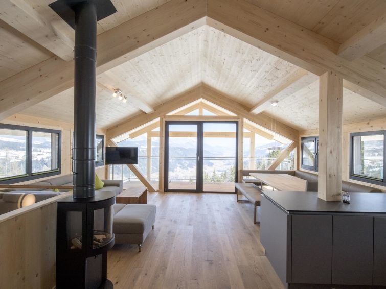 "Chalet Wellnes mit Swim Spa", chalet 5 pièces 120 m2. Clair, aménagement confortable et de bon goût: grand séjour/salle à manger avec poêle suédois, coin repas, TV (satellite) et écran plat. 3 chambres doubles. 1 chambre avec 2 x 2 lits superposés. Cuisine ouverte (four, lave-vaisselle, 4 plaques vitrocéramiques, congélateur, cafetière électrique). Salle de bains, 4 douches/WC. Balcon. Mobilier de balcon. Belle vue sur les pistes de ski. A disposition: sauna. Internet (Connexion WIFI, gratuit). Veuillez noter: logement non-fumeur. Cette location est un exemple de location / d'appartement. Ce chalet dispose d'un spa de nage privé.