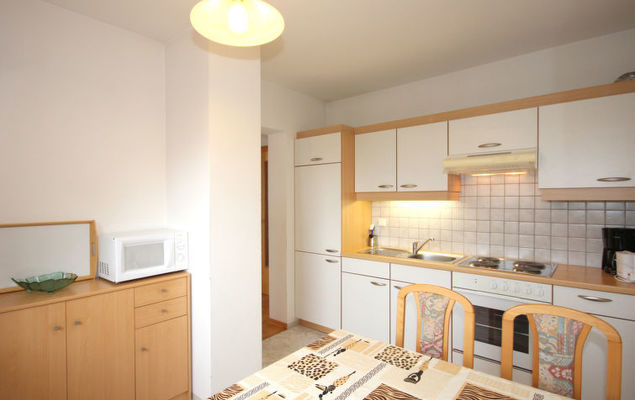 Apt 3 pièces 50 m2. Spacieux, aménagement agréable et de bon goût: entrée. 2 chambres doubles. Cuisine/séjour (4 plaques de cuisson, four, bouilloire électrique, four micro-ondes, cafetière électrique) avec table pour les repas et TV (satellite) (écran plat). Douche/WC. Balcon ou terrasse. Meubles de terrasse. Belle vue sur les montagnes et les alentours. A disposition: Internet (Connexion WIFI, gratuit). Veuillez noter: logement pour non fumeurs.