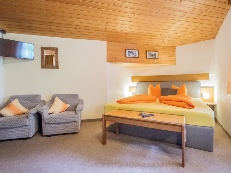 "Bergwind", apt 4 pièces 100 m2, à l'étage supérieur. À l'étage inférieur: entrée. À l'étage supérieur: 2 chambres, chaque chambre avec: 1 divan-lit, 1 lit double et douche/WC. Sortie sur le balcon. 1 chambre avec 1 lit double et douche/WC. Sortie sur le balcon avec WC séparés. Cuisine/séjour (4 plaques de cuisson, four, lave-vaisselle, four micro-ondes, cafetière électrique) avec table pour les repas et TV (satellite). Sortie sur le balcon. A disposition: Internet (Connexion WIFI, gratuit). 1 animal/ chien autorisé.