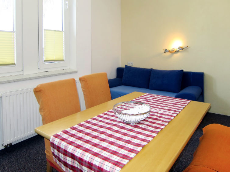 "Simone (SOE728)", apt 2 pièces 35 m2 au 2ème étage. Aménagement fonctionnel: 1 chambre avec 1 lit double, douche/WC et TV (satellite). Cuisine/séjour (mini-four, 2 plaques vitrocéramiques, cafetière électrique) avec table pour les repas, 1 divan-lit double et TV (satellite). Chauffage au fuel. A disposition: chaise haute pour enfant, lit bébé jusqu'à 2 ans. Internet (Connexion WIFI, gratuit). Veuillez noter: maximum 1 animal/ chien autorisé. Entrée privée. Remarque : la douche et les WC sont séparés uniquement par une porte mi-hauteur. Si le nombre d’occupants n’atteint pas le maximum, toutes les maisons ne seront pas disponibles.