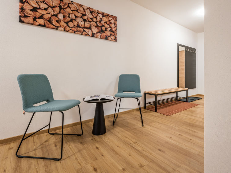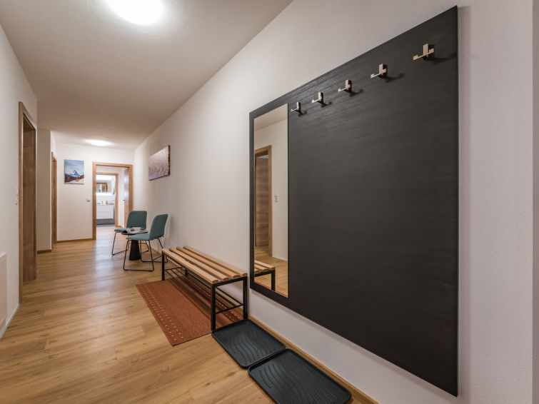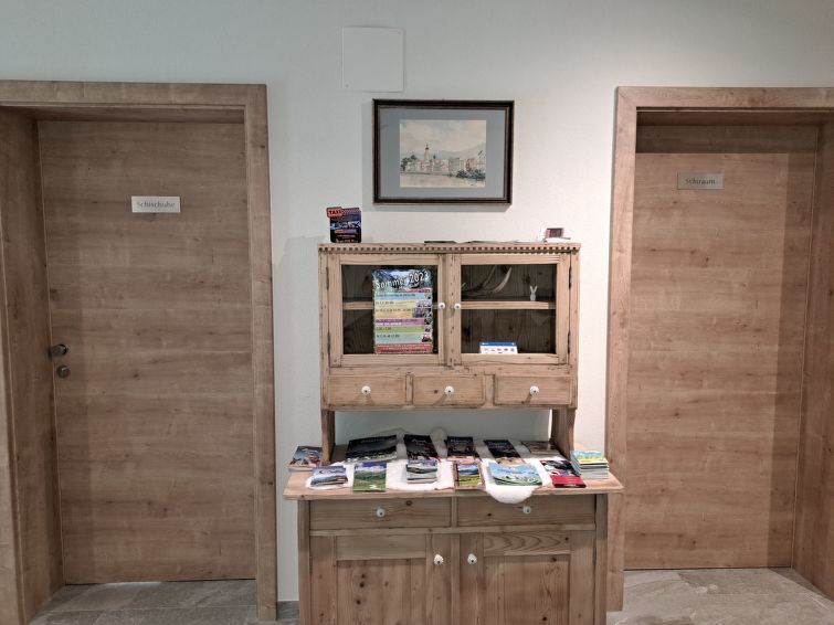 Apt 4 pièces 94 m2 au 2ème étage. Spacieux, aménagement confortable et moderne: séjour/chambre à coucher avec 1 lit gigogne (2 pers.), TV (satellite) (écran plat). 1 grande chambre double avec TV (satellite) (écran plat). 1 grande chambre avec 1 lit, 1 lit double, douche/WC et TV (satellite) (écran plat). Grande cuisine/séjour (four, 4 plaques vitrocéramiques, grille-pain, bouilloire électrique, micro-ondes, cafetière électrique) avec 1 divan-lit. Douche/WC. Chauffage. Sol en parquet. Grande terrasse 50 m2. Meubles de terrasse, barbecue. Superbe vue panoramique sur les montagnes. A disposition: Internet (Connexion WIFI, gratuit). Place de parking (2 Voitures). Veuillez noter: adapté(e) aux familles. Logement non-fumeur. Maximum 1 animal/ chien autorisé.