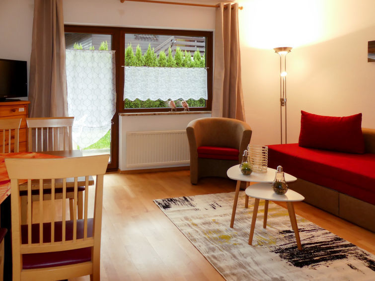 "Alpenchalets (ZSE201)", apt 2 pièces 50 m2, au rez-de-chaussée. Rénové en 2019, aménagement plaisant: séjour/chambre à coucher avec 1 divans-lits doubles, table pour les repas et TV (câblée). Sortie sur la terrasse. 1 chambre avec 1 lit double (160 cm). Cuisine (four, lave-vaisselle, 4 plaques vitrocéramiques, grille-pain, bouilloire électrique, four micro-ondes, cafetière électrique). Douche/WC. Chauffage électrique. Sol en parquet. Terrasse. Meubles de terrasse. A disposition: chaise haute pour enfant, lit bébé. Internet (Connexion WIFI, gratuit). Place de parking (1 Voiture). Maximum 1 animal/ chien autorisé. REG.NR.:50628-001024-2020
