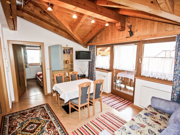 Apt 3 pièces 50 m2 au 2ème étage. Partiellement mansardé, aménagement plaisant: entrée. 2 chambres doubles. Cuisine/séjour (four, lave-vaisselle, 4 plaques vitrocéramiques, four micro-ondes, cafetière électrique) avec 1 divan-lit double, table pour les repas, douche/WC et TV (câblée). Sortie sur le balcon. Douche, WC séparé. Mobilier de balcon. Vue latérale sur les montagnes. A disposition: chaise haute pour enfant, lit bébé (en sus). Internet (Connexion WIFI, gratuit). Veuillez noter: logement non-fumeur. Maximum 2 animaux/ chiens autorisés. 50616-000107-2020