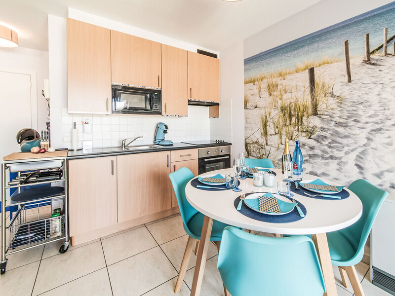 "Oase", apt 2 pièces 42 m2 au 2ème étage. Logement idéal pour 2 adultes + 2 enfants. Clair, aménagement moderne et plaisant: séjour/salle à manger avec table pour les repas, TV, Télévision numérique, chaînes de TV internationales et chauffage électrique. Sortie sur le balcon. Alcôve avec 1 x 2 lits superposés (90 cm, longueur 200 cm). 1 chambre double avec 1 lit double (160 cm, longueur 200 cm). Cuisine ouverte (four, lave-vaisselle, 4 plaques vitrocéramiques, grille-pain, micro-ondes, cafetière électrique, Capsules pour machine à café (Senseo) inclus) avec table pour les repas. Bain/douche/WC. Balcon 3 m2. Mobilier de balcon. Vue sur la piscine et le jardin. A disposition: chaise haute pour enfant, lit bébé jusqu'à 2 ans, sèche-cheveux. Internet (Connexion WIFI, gratuit). Garage No 14 (1 Voiture). Veuillez noter: logement non-fumeur. Détecteur de fumée, extincteur. Au lieu d'une chambre fermée, des espaces de couchage sont situés dans une zone ouverte (galerie, alcôve...).