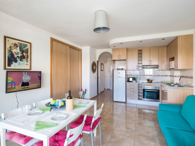 Apt 3 pièces 65 m2 au 2ème étage. Logement idéal pour 2 adultes + 2 enfants. Aménagement simple et confortable: séjour/salle à manger avec Télévision numérique, écran plat, air-conditionné et chauffage à air chaud. Sortie sur la terrasse. 1 chambre double avec 2 lits (90 cm). 1 chambre double avec 1 lit (150 cm). Cuisine ouverte (four, four micro-ondes, cafetière électrique). Douche/WC. Terrasse. Meubles de terrasse. Vue sur la piscine, le jardin et l'océan. A disposition: lave-linge. Adapté(e) aux familles. VFT/MA/35731