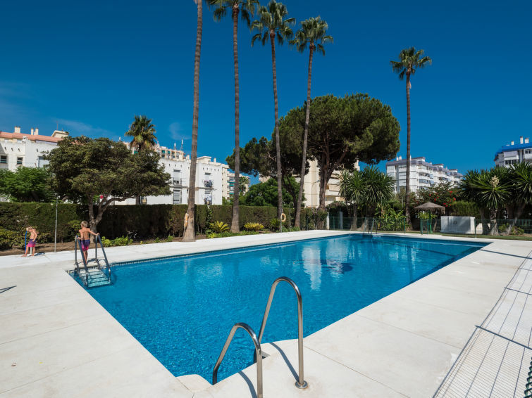 Benalmadena Costa: Petite résidence accueillante, confortable "Torrealmadena". Excellente situation: centrale mais tranquille, à 200 m de la mer, à 200 m de la plage. En commun: jardin avec pelouse, piscine rectangulaire (disponibilité saisonnière: 01.Jan.-31.Dec.). WC dans l'espace piscine, douche extérieure, place de parking (nombre de places limité). Magasins, magasin d'alimentation 200 m, supermarché 1 km, arrêt du bus 200 m, gare ferroviaire 2 km, plage de sable 200 m. Port plaisance 5 km. Attractions à proximité: Tivoli Wordl. Le propriétaire n'accepte pas les groupes de jeunes. Environnement très sensible au bruit. Silence et bonne tenue exigés.