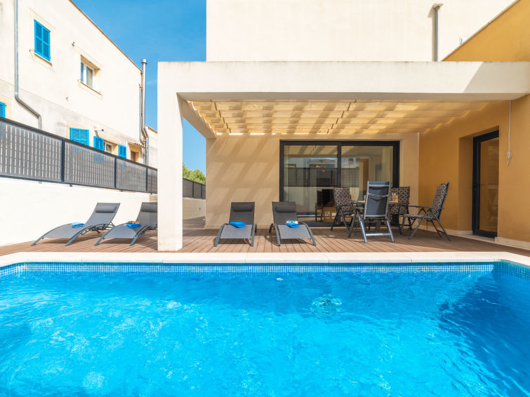 Colonia de Sant Pere à 13 km de Artà: Belle, grande villa "Zafra (Can Aruna)". Dans la localité, à 500 m du centre, situation tranquille, ensoleillée quartier résidentiel, à 2 km de la forêt, à 500 m de la mer. A usage privé: jardin avec plantes, cour, piscine rectangulaire (6 x 4 m, profondeur 120 - 150 cm, disponibilité saisonnière: 01.Jan.-31.Dec.). Douche extérieure, jardinet, tonnelle, pergola, meubles de jardin, barbecue. Infrastructures de la Maison: accès internet, Connexion WIFI, air-conditionné, lave-linge. Place de parking près de la maison sur le terrain. Supermarché 700 m, restaurant, bar 550 m, boulangerie 600 m, centre à 5 minutes à pieds, plage de sable 2.5 km, plage de rochers 500 m. Port plaisance 550 m, terrain de golf 17 km, chemins de randonnées pédestres depuis la maison 2 km, piste cyclable 700 m. Attractions à proximité: Artá, Betlem, Can Picafort, Alcúdia, Cala Ratjada, Manacor. Région de randonnées: Ermita de Betlem, Finca Son Real, Albufera d'Alcúdia. Veuillez noter: voiture recommandée. Bien convenant à 6 adultes groupes de jeunes sur demande seulement. Aéroport 78 km de la maison.