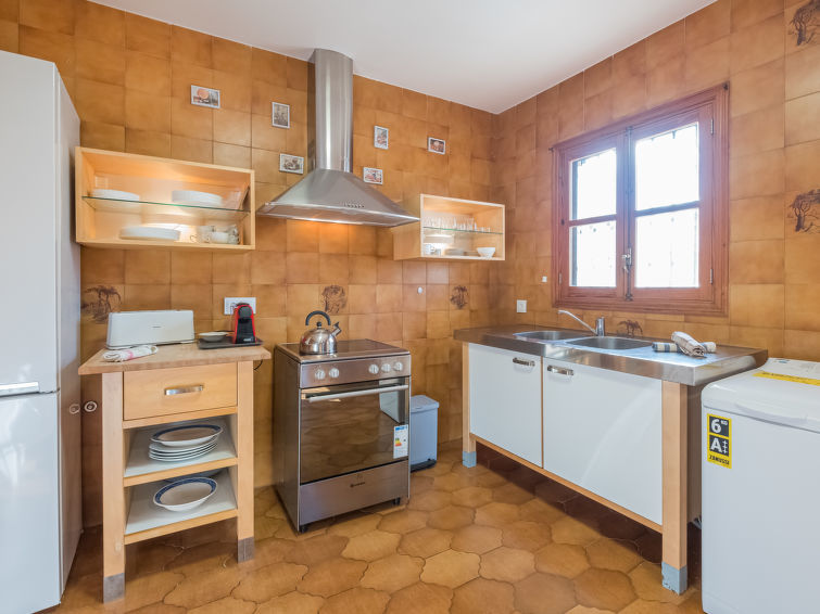 "Dofins Bahia Azul", villa 4 pièces 180 m2, rez-de-chaussée surélevé. Logement idéal pour 6 adultes. Spacieux et clair, partiellement rénovée, aménagement fonctionnel et confortable: grand séjour/salle à manger avec cheminée (uniquement à titre de décoration), table pour les repas, Télévision numérique, écran plat, chauffage électrique, air-conditionné et chauffage à air chaud. Sortie sur le jardinet, sur la piscine. 1 grande chambre double avec baie vitrée avec 2 lits (90 cm, longueur 200 cm), douche/WC, Télévision numérique, écran plat, chauffage électrique, air-conditionné et chauffage à air chaud. 2 grandes chambres doubles, chaque chambre avec: 2 lits (105 cm, longueur 200 cm), chauffage électrique, air-conditionné et chauffage à air chaud. Cuisine/séjour (four, 3 plaques vitrocéramiques, grille-pain, bouilloire électrique, four micro-ondes, congélateur, cafetière électrique) avec table pour les repas, chauffage électrique. Sortie sur le jardinet. Douche/bidet/WC. Chauffage électrique. 2 grandes terrasses, jardin, pelouse, tonnelle. Meubles de terrasse, barbecue, chaises longues, loggia. Vue sur la localité. A disposition: lave-linge, sèche-linge, fer à repasser, chaise haute pour enfant, lit bébé jusqu'à 2 ans, sèche-cheveux. Internet (Connexion WIFI, gratuit). Place de parking (cloturée) près de la maison. Veuillez noter: adapté(e) aux familles. Maison non-fumeur. Extincteur. ETV7913
