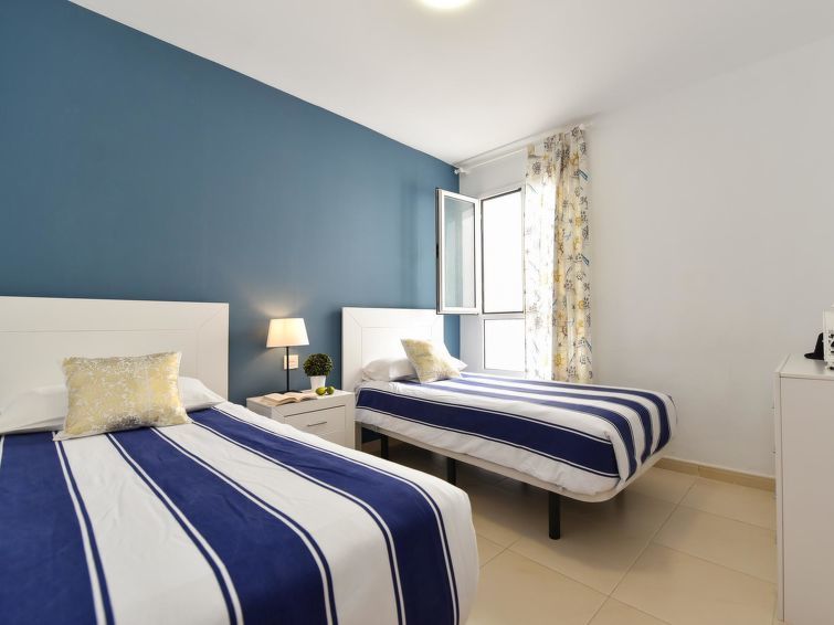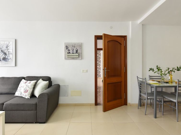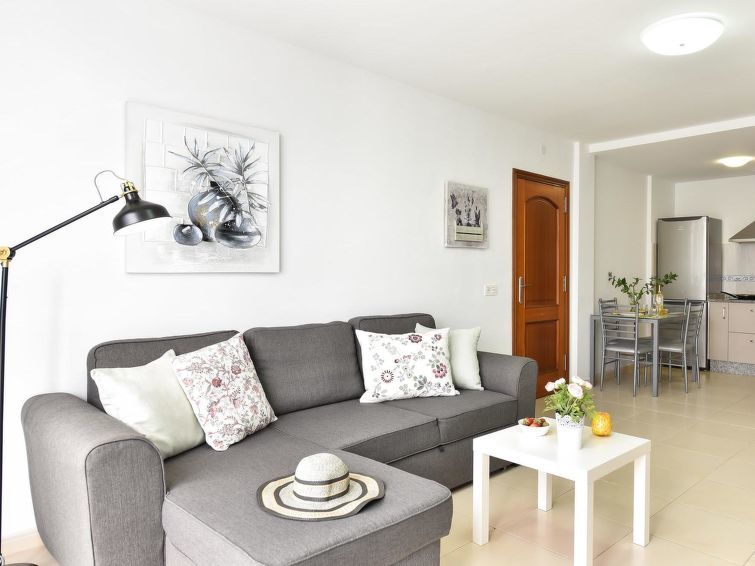 Apt "arinaga 2b", 4 pièces pour 5 personnes, 80 m2 au 1er étage, confortable et moderne aménagement. Séjour/salle à manger avec TV (satellite). Non permis de fumer. Internet (Connexion WIFI). Chambre à coucher avec 1 lit double. Chambre à coucher avec 2 lits normaux. Chambre à coucher avec 1 lit normal. Cuisine ouverte avec four micro-ondes, table pour les repas, réfrigérateur et congélateur. Douche/WC. Autres fournitures: chaise haute pour enfant, sèche-cheveux, fer à repasser. VV-35/1/1120