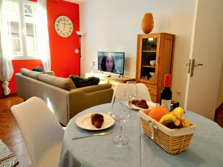 Apt "La flor", 3 pièces pour 4 personnes, 60 m2 au 1er étage, simple et confortable aménagement. Séjour/salle à manger avec TV (satellite). Non permis de fumer. Internet (Connexion WIFI). Chambre à coucher avec 1 lit double. Chambre à coucher avec 2 lits normaux. Cuisine/séjour avec four à 4 plaques, four micro-ondes, four, coin repas, lave-vaisselle, réfrigérateur et congélateur. Douche/WC. Autres fournitures: chaise haute pour enfant, sèche-cheveux, fer à repasser, lave-linge, sèche-linge. 2018/11394