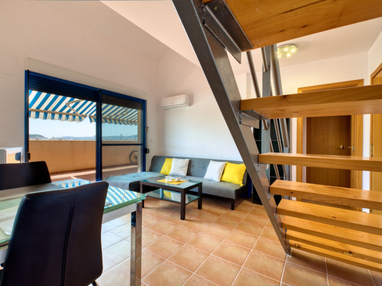 "La Marjal", appartement sur 2 niveaux 3 pièces 64 m2. Spacieux et clair, aménagement confortable et plaisant: séjour/salle à manger avec 1 divan-lit, Télévision numérique, air-conditionné et chauffage à air chaud. Sortie sur la terrasse. 1 chambre avec 2 lits (90 cm, longueur 190 cm), air-conditionné, ventilateur et chauffage à air chaud. Cuisine (four, lave-vaisselle, 4 plaques vitrocéramiques, four micro-ondes, congélateur, cafetière électrique). Douche/WC. À l'étage supérieur: 1 chambre avec 1 grand-lit (150 cm, longueur 190 cm), bain/bidet/WC, air-conditionné et chauffage à air chaud. Grande terrasse 30 m2. Meubles de terrasse. A disposition: lave-linge, fer à repasser, sèche-cheveux. Internet (Connexion WIFI, gratuit). Place de parking No 64. AT-481698-A