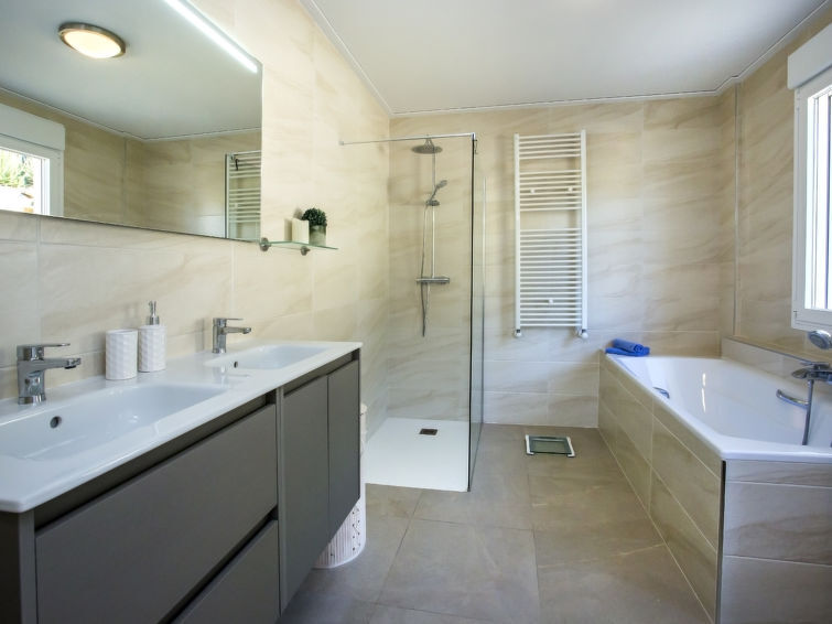 "Villa Cara Mull Alcalalí", villa 9 pièces 350 m2 sur 2 niveaux. Spacieux et clair, aménagement très agréable et luxueux: séjour/salle à manger avec TV (satellite). Sortie sur la terrasse, pergola. 1 chambre 35 m2 avec 1 grand-lit (180 cm, longueur 200 cm), bain/douche/WC et double vasque. Sortie sur la terrasse. 2 chambres, chaque chambre avec: 1 grand-lit (180 cm, longueur 200 cm). Sortie sur la terrasse. Grande cuisine ouverte (four, lave-vaisselle, 3 plaques à induction, grille-pain, bouilloire électrique, micro-ondes, congélateur, cafetière électrique). Douche, WC séparé. À l'étage inférieur: séjour/salle à manger avec TV (satellite). Sortie sur la terrasse, sur la piscine. 1 chambre avec 1 grand-lit (180 cm, longueur 200 cm), douche/WC. Sortie sur la terrasse, sur la piscine. 3 chambres, chaque chambre avec: 1 grand-lit (180 cm, longueur 200 cm). Sortie sur la terrasse, sur la piscine. Grande cuisine ouverte (four, lave-vaisselle, 4 plaques à induction, grille-pain, micro-ondes, congélateur, cafetière électrique). WC séparé, bain/douche/WC. 2 grandes terrasses. Meubles de terrasse, barbecue, chaises longues, place pour s'asseoir. Superbe vue sur les montagnes, la vallée et les alentours. A disposition: lave-linge, sèche-linge, coffre-fort, fer à repasser, chaise haute pour enfant, lit bébé, sèche-cheveux. Internet (Connexion WIFI, gratuit). Maximum 1 animal/ chien autorisé. VT-513471-A // Reg. Nr.: ESFCTU00000304900046121000000000000000000VT-513471-A0