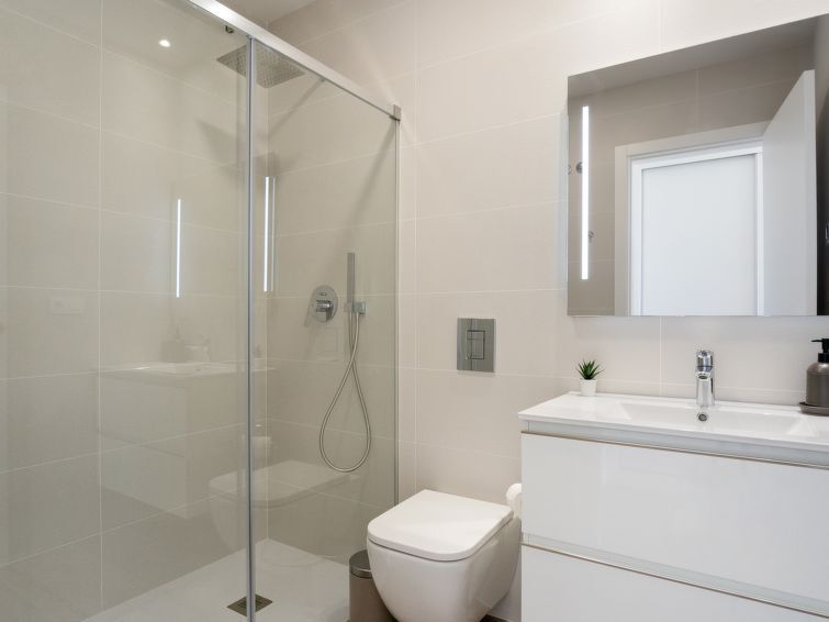 Belle petite résidence moderne "Ema Residencial", de 4 étages, année de construction 2023. À 3 km du centre de La Zenia, à 4 km du centre de Punta Prima, à 7 km du centre de Dehesa de Campoamor, zone avec peu de trafic, à 2.8 km de la mer, à 2.8 km de la plage. En commun: terrain (clôturé), piscine (disponibilité saisonnière: 01.Jan. - 31.Dec.). Bassin pour les enfants, douche extérieure, espace de jeux pour les enfants. Infrastructures de la Maison: ascenseur. Magasin d'alimentation, supermarché 950 m, restaurant 100 m, arrêt de bus "Platja Flamenca – Mercadillo" 350 m, gare ferroviaire "Orihuela" 27 km, plage de sable "Playa la Zenia" 3 km. Terrain de golf (18 trous) 1.9 km. Le propriétaire n'accepte pas les groupes.