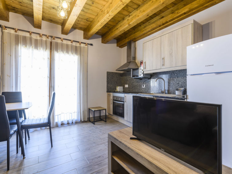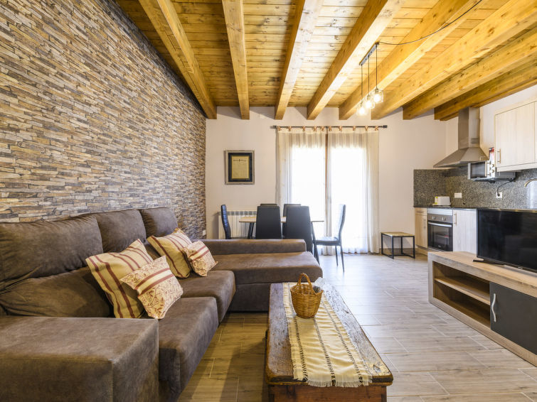 "El Ventanico I", apt 2 pièces 50 m2. Aménagement fonctionnel et confortable: séjour/salle à manger avec table pour les repas, Télévision numérique et chauffage a gaz. Sortie sur le balcon. 1 chambre double avec 1 grand-lit (135 cm, longueur 190 cm), chauffage a gaz. Cuisine (four, 4 plaques vitrocéramiques, grille-pain, four micro-ondes, congélateur, cafetière électrique). Bain/bidet/WC. Chauffage au gaz. Petit balcon. Vue sur les montagnes, les alentours et la localité. A disposition: lave-linge, fer à repasser, chaise haute pour enfant, lit bébé, sèche-cheveux. Internet (Connexion WIFI, gratuit). Veuillez noter: 1 animal/ chien autorisé. Sans ascenseur. VT-40240-CS