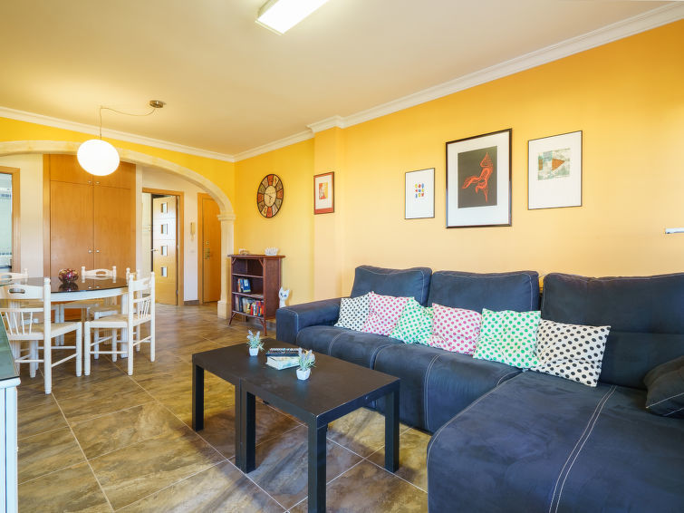 Apt 4 pièces 76 m2 au 4ème étage. Aménagement fonctionnel: séjour/salle à manger avec Télévision numérique et DVD. Sortie sur le balcon. 2 chambres doubles, chaque chambre avec: ventilateur. Sortie sur le balcon. 1 chambre avec 1 grand-lit. Sortie sur le balcon. Cuisine (four, lave-vaisselle, X plaques vitrocéramiques, four micro-ondes, congélateur). Bain/bidet/WC, douche/WC. Balcon 8 m2. Meubles de terrasse. Vue sur la mer. A disposition: lit bébé. Place de parking. AT-421610-A