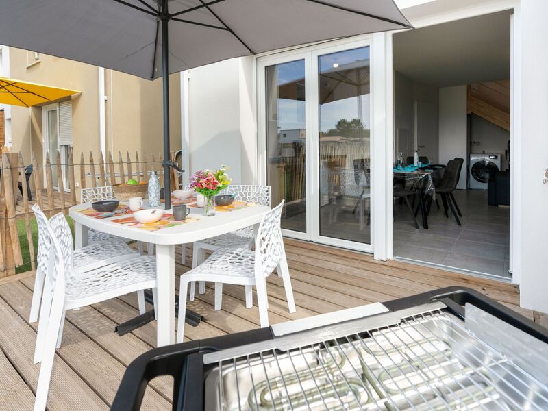 "Soleil Couchant B03", appartement sur 2 niveaux 3 pièces 54 m2, au rez-de-chaussée. Aménagement confortable et moderne: séjour avec TV (écran plat). Cuisine/séjour (four, lave-vaisselle, 1 plaque vitrocéramiques, 2 feux, grille-pain, bouilloire électrique, micro-ondes, cafetière électrique) avec table pour les repas, air-conditionné, chauffe eau et volet roulant électrique. Sortie sur la terrasse. Douche/WC. Air-conditionné. À l'étage supérieur: 1 chambre avec 1 grand-lit (1 x 140 cm, longueur 190 cm). 1 chambre avec 1 x 1 lits superposés (90 cm, longueur 190 cm), 1 grand-lit (1 x 140 cm, longueur 190 cm). WC séparé. Terrasse 10 m2, situation sud et situation ouest. Meubles de terrasse. A disposition: lave-linge, fer à repasser. Internet (Connexion WIFI, en sus). Place de parking No 26. Veuillez noter: logement non-fumeur. 1 animal/ chien de petite taille autorisé. Détecteur de fumée. Annonce d'un particulier (art 155, IV du CGI).