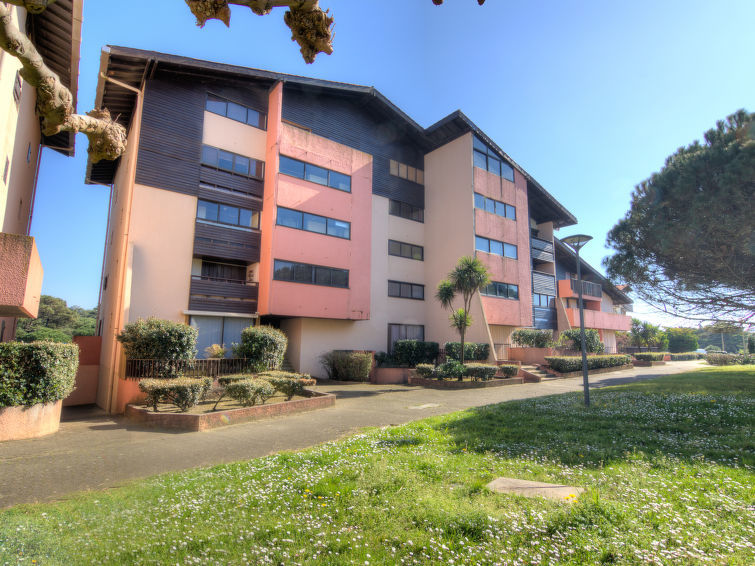 Seignosse Le Penon à 6 km de Hossegor: Les résidences "Le Douc I" et "Le Douc II" sont de style landais. Les appartements sont répartis sur 4 étages (sans ascenseur) résidence "Douc". À 300 m de la mer, à 6 km du lac. Infrastructures de la Maison: chauffage central. Parking public possible dans la rue. Centre commercial 100 m, restaurant 200 m, plage de sable 300 m. Terrain de golf (18 trous) 4 km. Veuillez noter: La photo ne montre qu’un exemple de location de vacances. Parc aquatique 200 m. Le bâtiment C du Douc I dispose d'un local à vélos en commun.