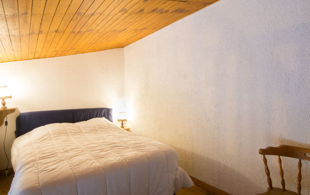 Apt 2 pièces 40 m2 sur 2 niveaux au 3ème étage, situation ouest. Séjour/salle à manger avec TV. 1 chambre avec 1 lit et 1 x 2 lits superposés. Coin cuisine (4 plaques de cuisson, four). Douche/WC. À l'étage supérieur: galerie ouverte avec 1 grand-lit. Meubles de terrasse. Place de parking No 10. Veuillez noter: maximum 1 animal/ chien autorisé. Détecteur de fumée. loge de 4 m2. Galerie ouverte sur le salon. WIFI non disponible. 4029600006273