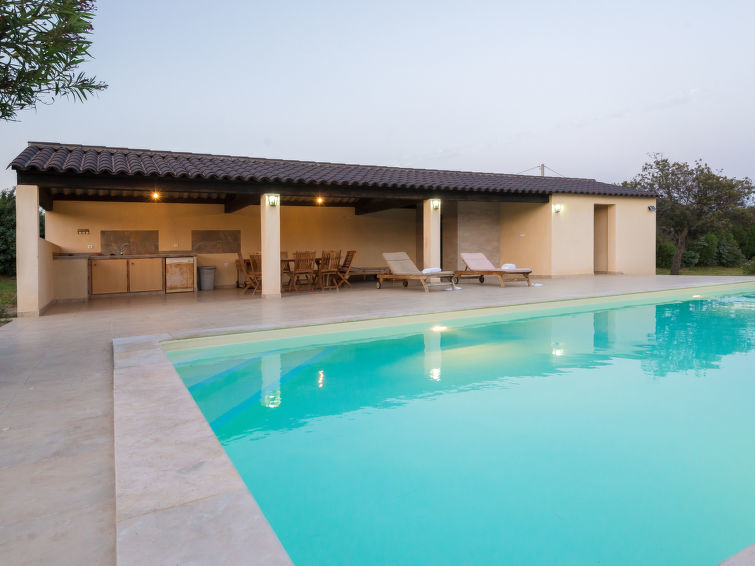 Villa 6 pièces 250 m2 sur 2 niveaux. Aménagement agréable et plaisant: grand séjour/salle à manger avec TV (écran plat). Sortie sur la terrasse. 2 chambres, chaque chambre avec: 1 grand-lit (160 cm, longueur 200 cm), douche/WC. Sortie sur la terrasse. 1 chambre avec 2 lits (90 cm, longueur 190 cm), douche/WC. Sortie sur la terrasse. 1 chambre avec 2 lits (90 cm, longueur 190 cm), douche/WC. Grande cuisine ouverte (4 plaques de cuisson, four, lave-vaisselle, four micro-ondes, congélateur, cafetière électrique). À l'étage supérieur: 1 chambre avec 1 grand-lit (160 cm, longueur 200 cm). Sortie sur le balcon. Salle de bains, WC séparé. Air-conditionné, chauffage à air chaud. Grande terrasse 50 m2. Meubles de terrasse, chaises longues (10). Vue sur le jardin. A disposition: lave-linge, fer à repasser, chaise haute pour enfant, lit bébé jusqu'à 3 ans, sèche-cheveux. Internet (Connexion WIFI, gratuit). A noter : 2 des chambres du rez-de-chaussée sont situées dans l'annexe attenante à la villa avec une entrée extérieure.