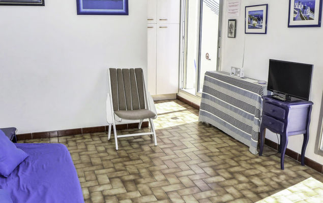 Studio 27 m2 au 3ème étage. Aménagement fonctionnel: séjour/salle à manger avec 1 divan-lit double et TV. Sortie sur le balcon, orientée sud-est. Cuisine ouverte (4 plaques de cuisson, four, lave-vaisselle, four micro-ondes, congélateur). Douche/WC. Balcon 10 m2. Meubles de terrasse. Vue sur la mer. A disposition: Internet (Connexion WIFI, en sus). Place de parking No 6. Veuillez noter: détecteur de fumée.