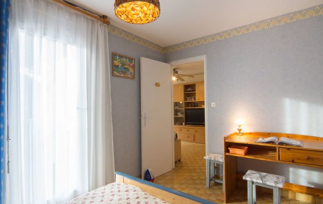 Apt 2 pièces 38 m2. Aménagement confortable: séjour/salle à manger avec TV (écran plat). 1 chambre avec 1 grand-lit (140 cm, longueur 190 cm). Entrée avec 1 x 2 lits superposés. Coin cuisine (2 plaques de cuisson, lave-vaisselle, grille-pain, bouilloire électrique, congélateur, cafetière électrique, combiné micro-ondes). Douche/WC. Terrasse 6 m2, couverte, situation sud. Meubles de terrasse. Vue sur le jardin. A disposition: lave-linge. Internet (Connexion WIFI, en sus). Place de parking. Veuillez noter: détecteur de fumée.